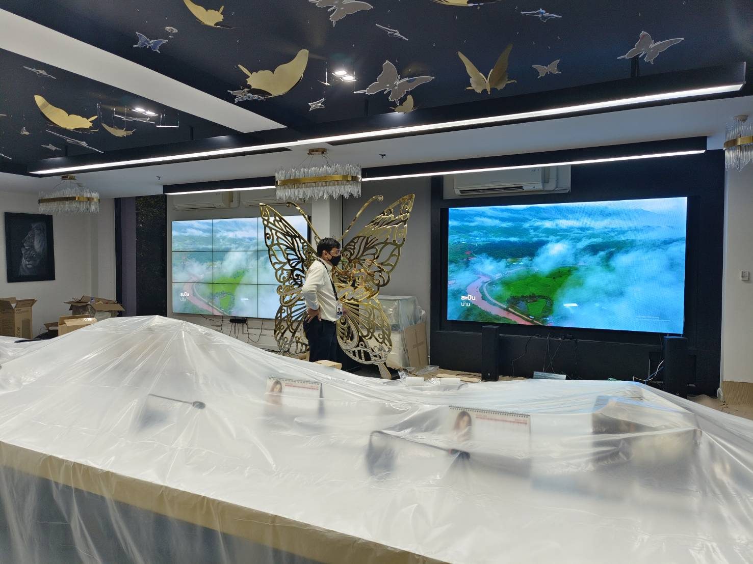 จอแอลอีดีติดตั้งถาวร LED INSTALLATION การติดตั้งจอแอลอีดีถาวร เปรียบเสมือนการแสดงภาพขนาดใหญ่ ที่มีการแสดงภาพออกมาได้หลากหลายมุม การแบ่งส่วนการแสดงภาพที่ออกมาได้อย่างสมดุล ไม่ว่าจะเป็นการประชุมที่มีการพรีเซ็นงาน การเปิดตารางเอกสาร การเรียนการสอน การแต่งงานที่มีการแสดงภาพบ่าวสาว โชว์สตรอรี่ งานเลี้ยงที่มีการเล่นกราฟฟิกที่ตื่นตาตื่นใจ รวมถึงการถ่ายทอดสด และป้ายโฆษณาต่างๆ ซึ่งปัจจุบันจอแอลอีดีได้เข้ามามีบทบาทในการจัดงานต่างๆ มากมาย และการติดตั้งจอแอลอีดีถาวรก็เข้ามาเป็นเทคโนโลยีใหม่ที่จะเข้ามาทดแทนจอโปรเจ็คเตอร์ จอแอลอีดีข้อเด่นคือ ความละเอียดสูง ภาพคมชัด สีสวยสด แข็งแรง ทนทาน อายุการใช้งานนาน คุ้มค่ากับการลงทุน